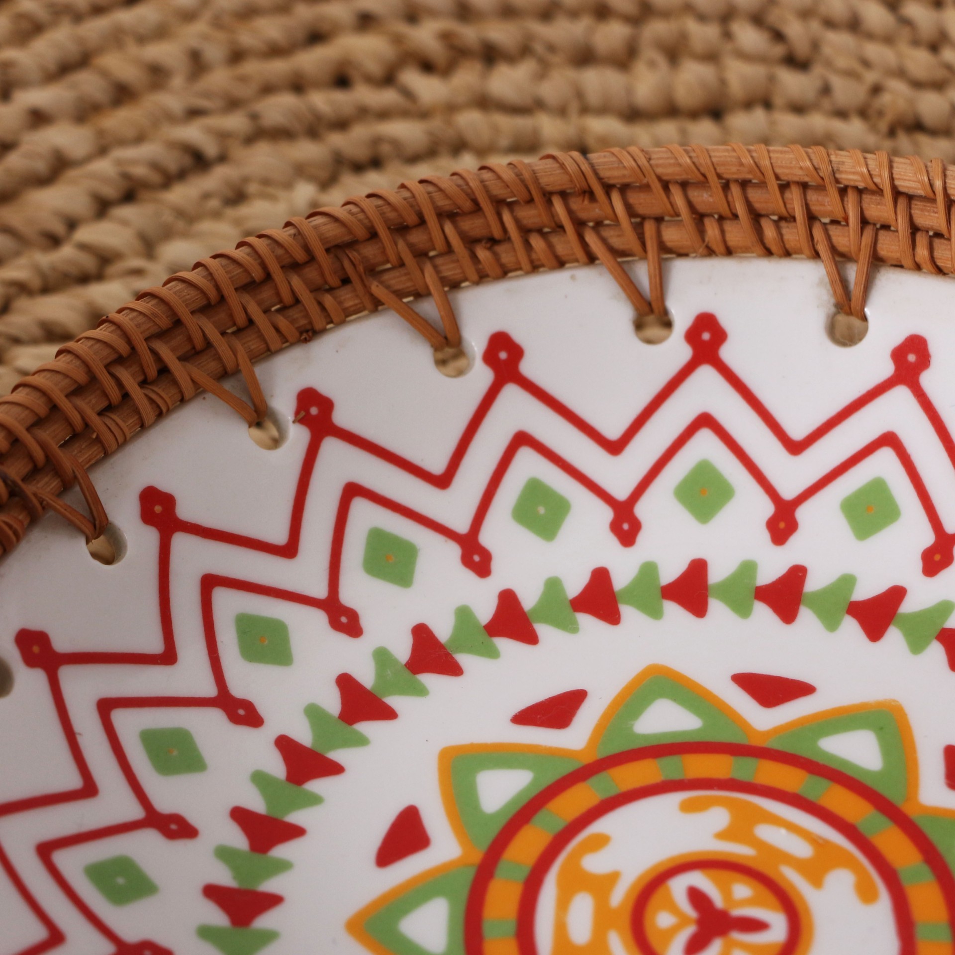 - Ürünümüz el boyaması seramik ve rattan çerçevelidir.