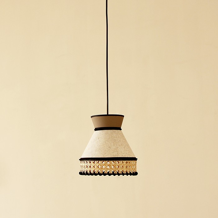 Çap: 21 cm Yükseklik: 22 cm Ürünümüz Doğal hazeran malzemeden ve ışık geçirgenliği olan Abajur kumaşından statik boyalı tel üzerine el işçiliği ile üretilmiştir. Ürünümüz siyah askı tesisatı ile birlikte gönderilecektir.