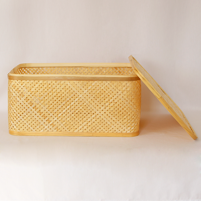 Zarina 44x30H20 cm Bambu Kapaklı Saklama Sepeti